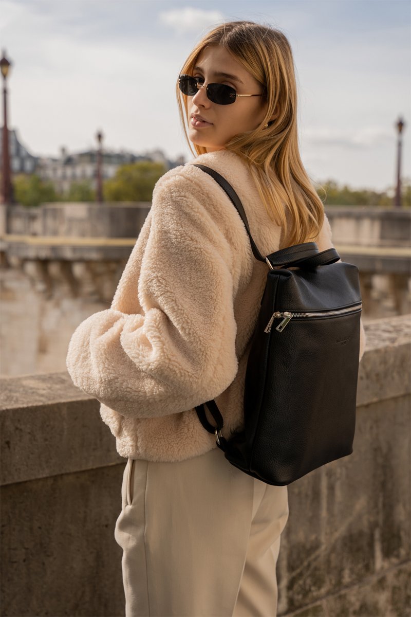 Rugtas van gekorreld leer die te veranderen is in een schoudertas.