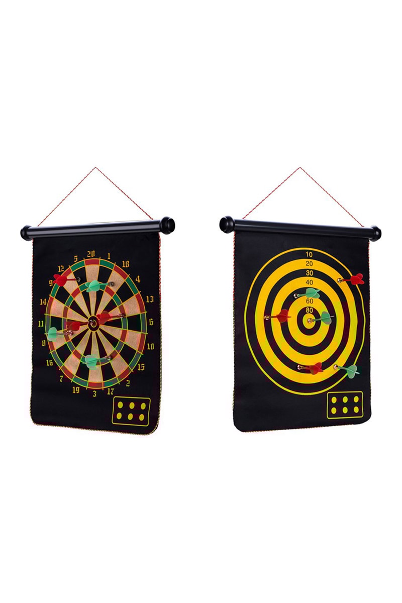 Het dubbelzijdig bedrukte dartbord wordt geleverd met 6 gemagnetiseerde dartpijlen en laat je spelen in 2 standen (klassiek darts/bull game).