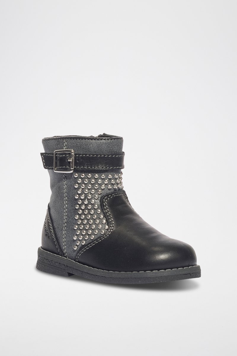 Leren Enkellaarzen Hiron 19 - Zwart en Lichtgrijs