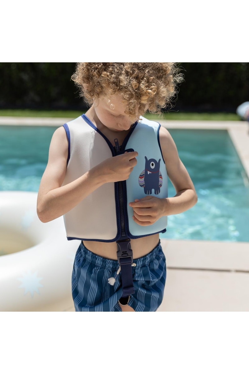 Kleur: hemelsblauw, beige, marineblauw en wit