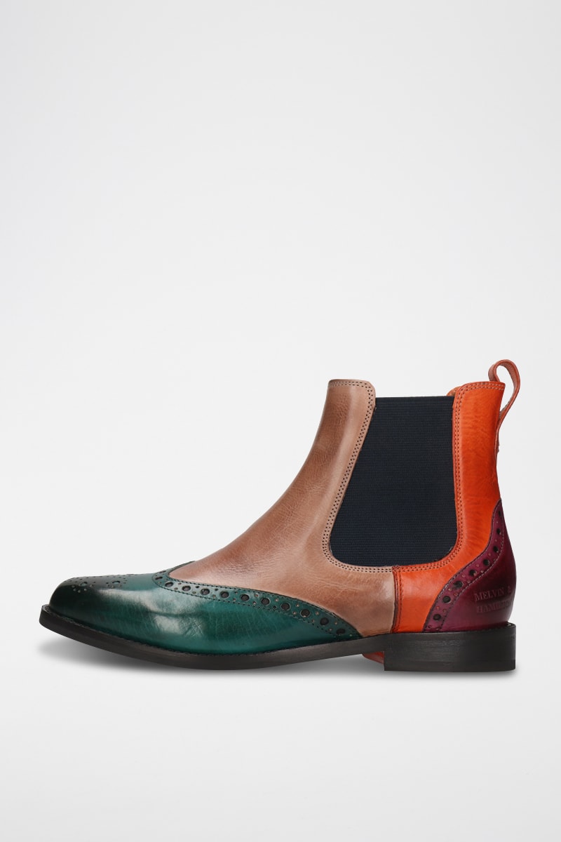 Leren Chelsea enkellaarzen Selina- Donkergroen et en Oranje