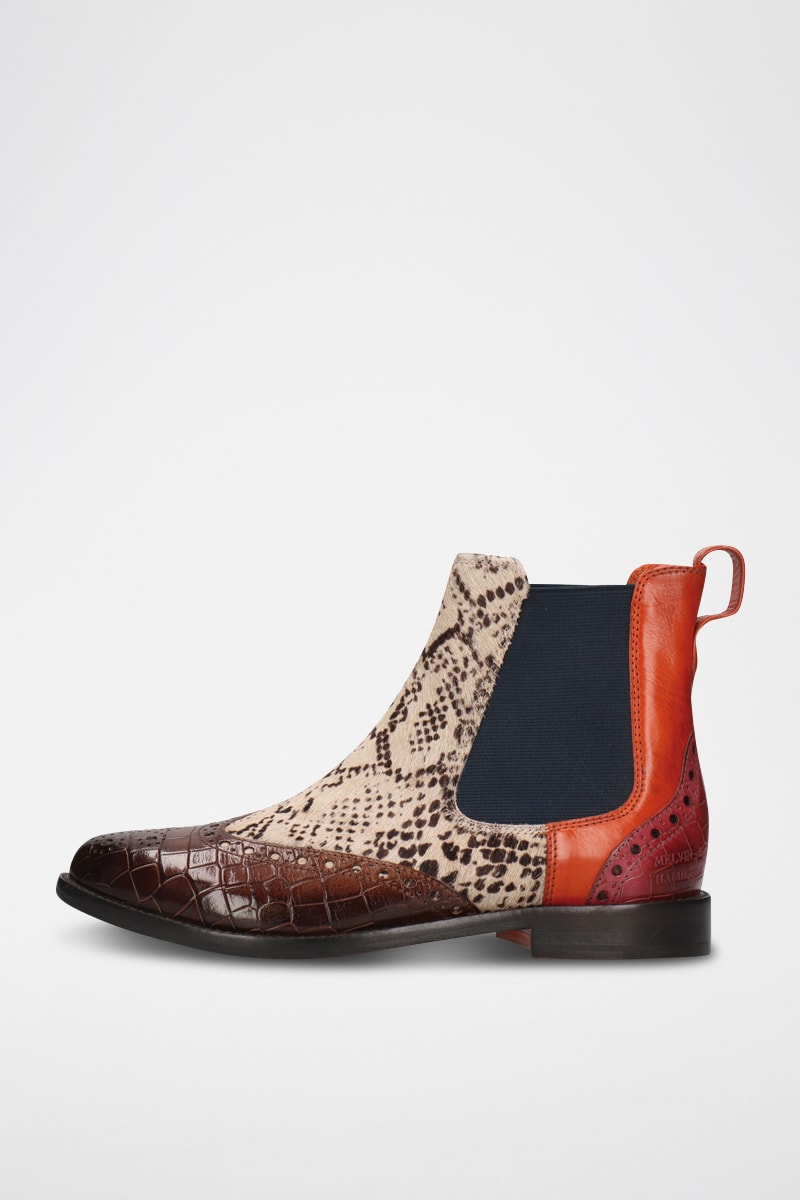 Leren Chelsea enkellaarzen Selina- Bruin en Oranje