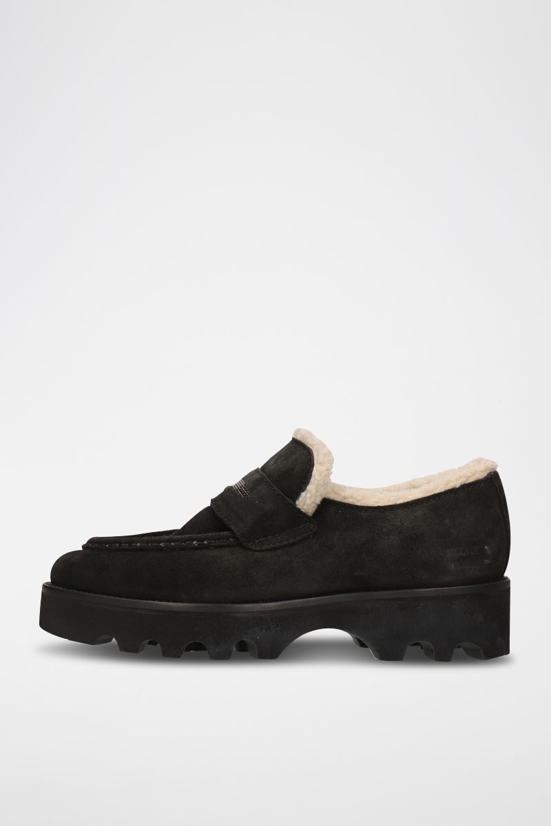Gevoerde platformmoccasins van nubuck Jade- Zwart