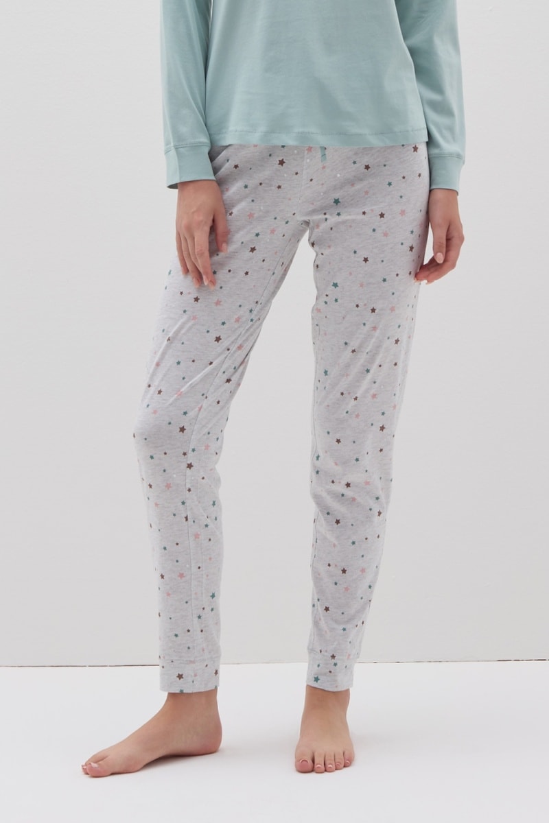Biologisch Katoenen Pyjama gemêleerd lichtgrijs en zeegroen