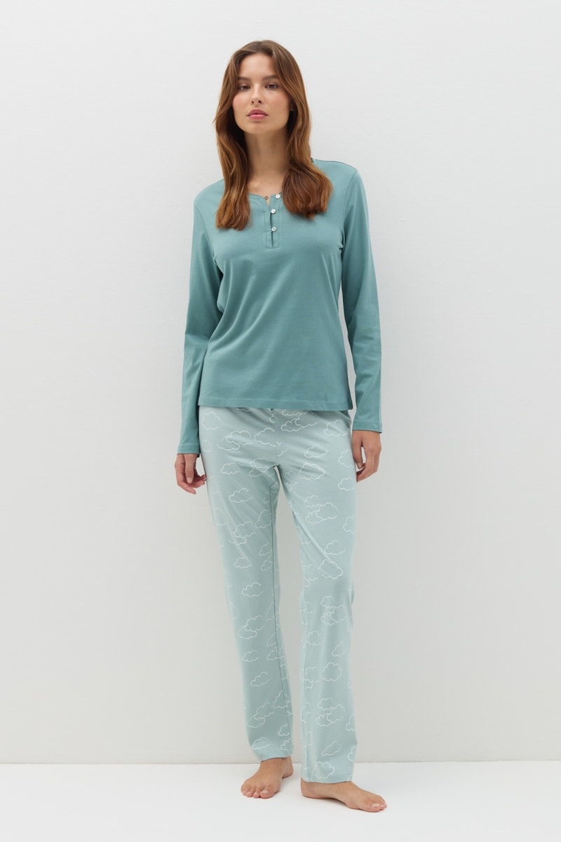 Pyjama van biokatoen bestaat uit: