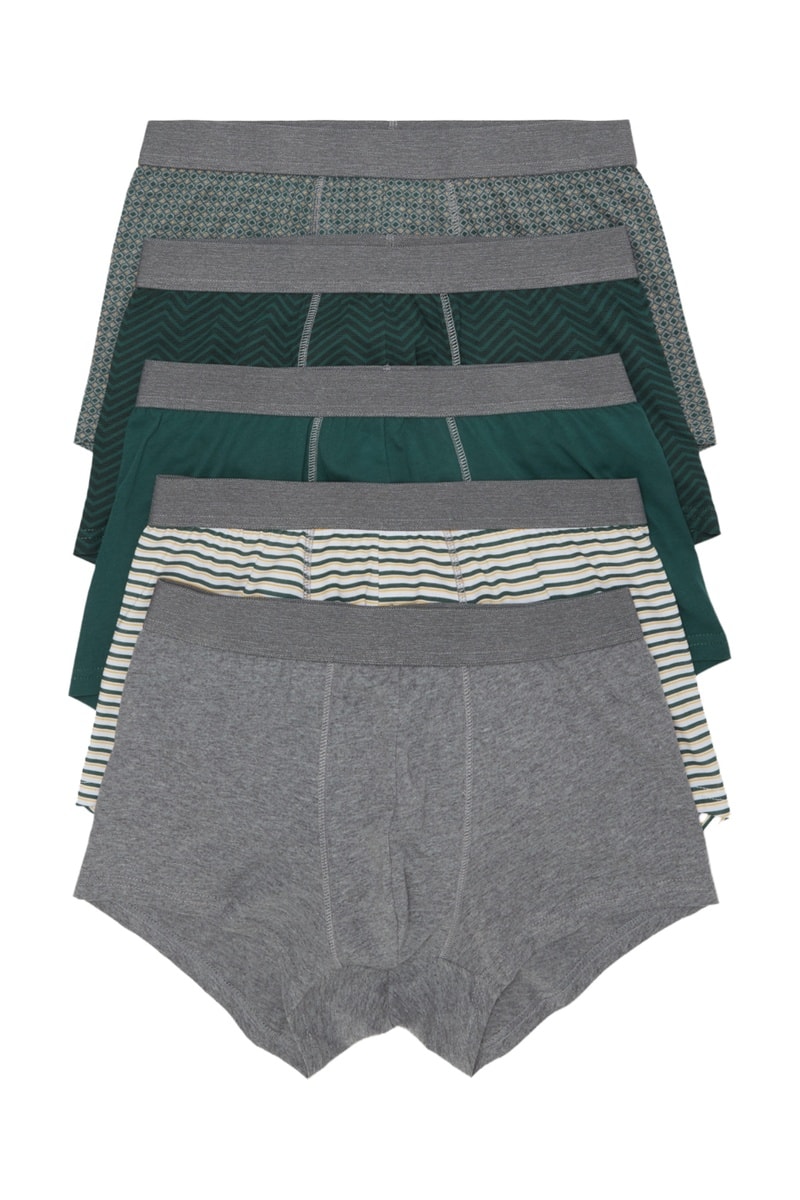 5 Biologisch Katoenen Boxers - Donkergroen en Donkergrijs
