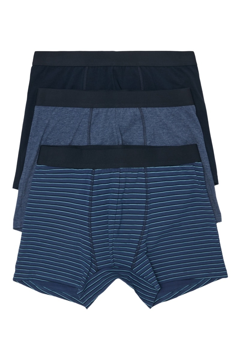 3 boxers van biologische katoenmix waarvan 1 met decoratief motief.