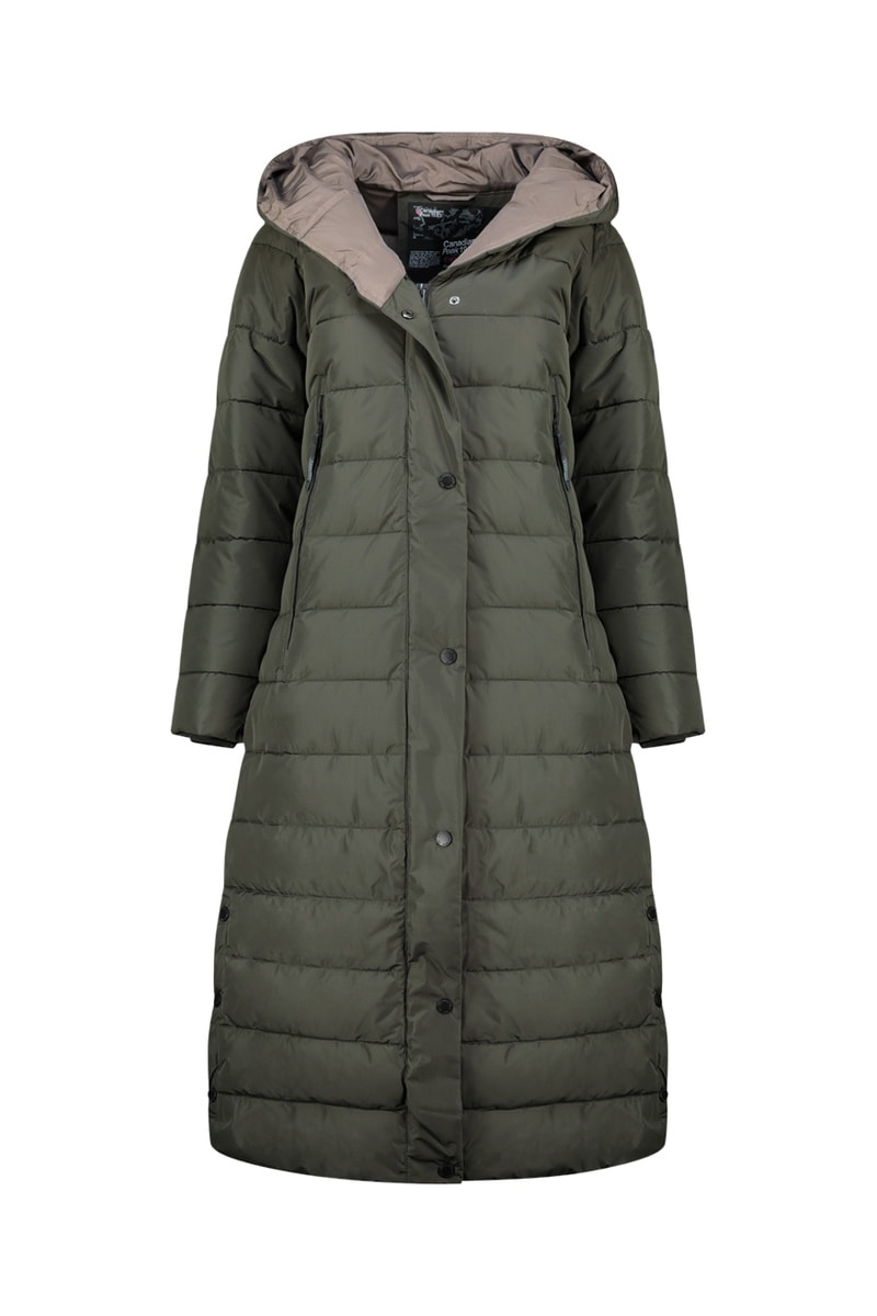 Lange Gewatteerde Jas met Capuchon Constanceak - Kaki
