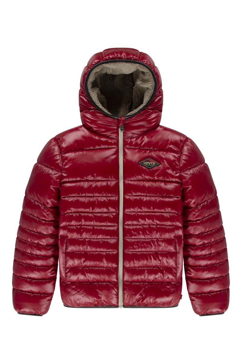 Belijning met streepmotief op de capuchon, op de mouwen en aan de onderkant.