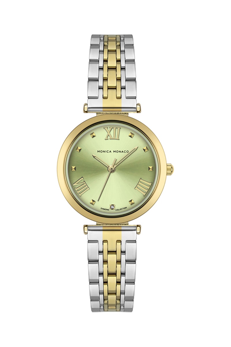 Stalen & Diamanten Quartz Horloge - Zilverkleurig en Goudkleurig - Monica Monaco