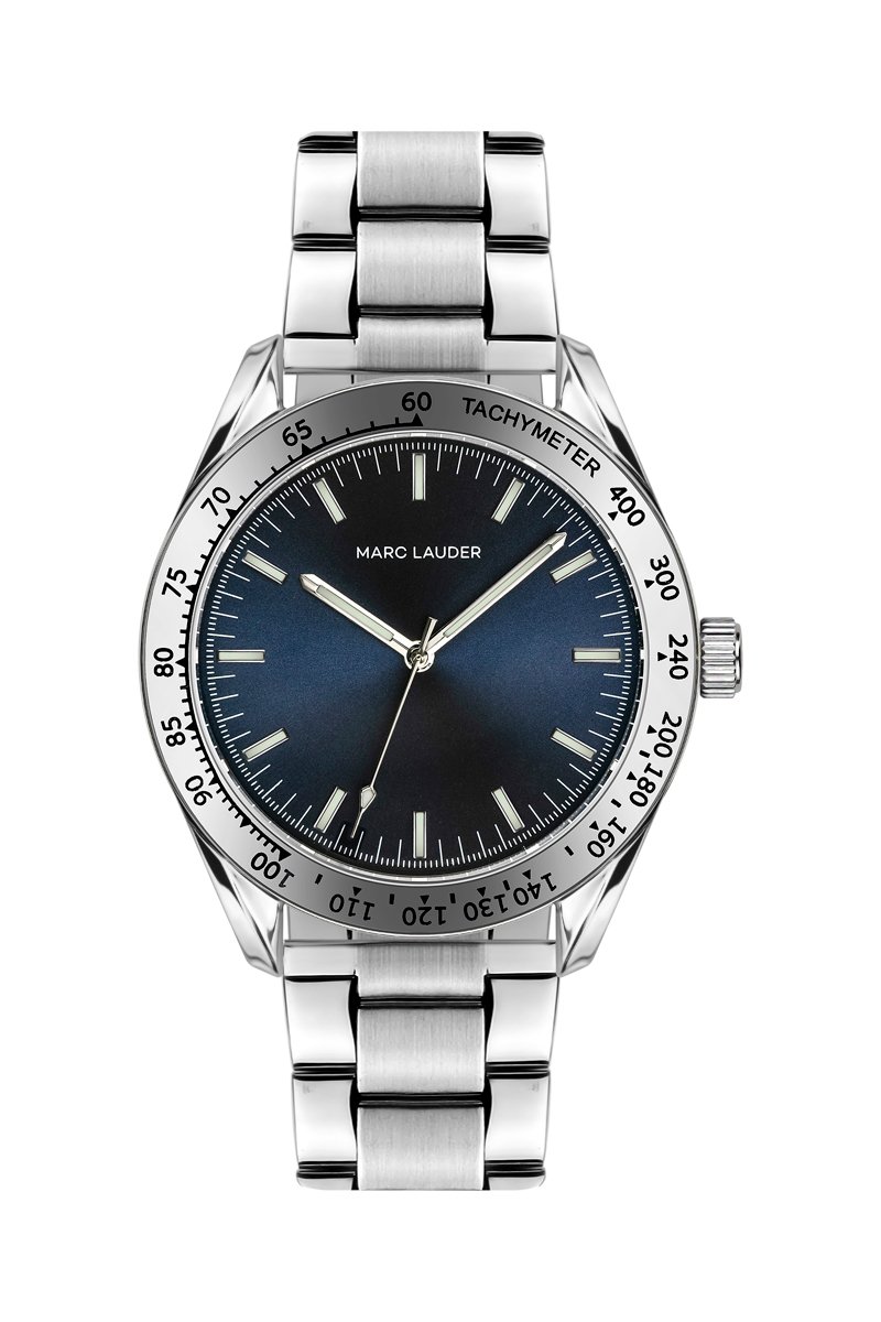 Stalen Quartz Horloge Helsinki - Tachymeter - Zilverkleurig en Blauw
