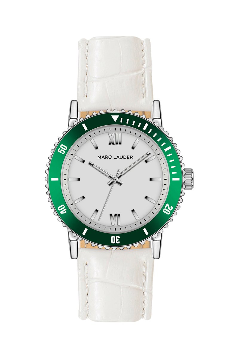 Leren Quartz Horloge Sofia - Wit en Groen