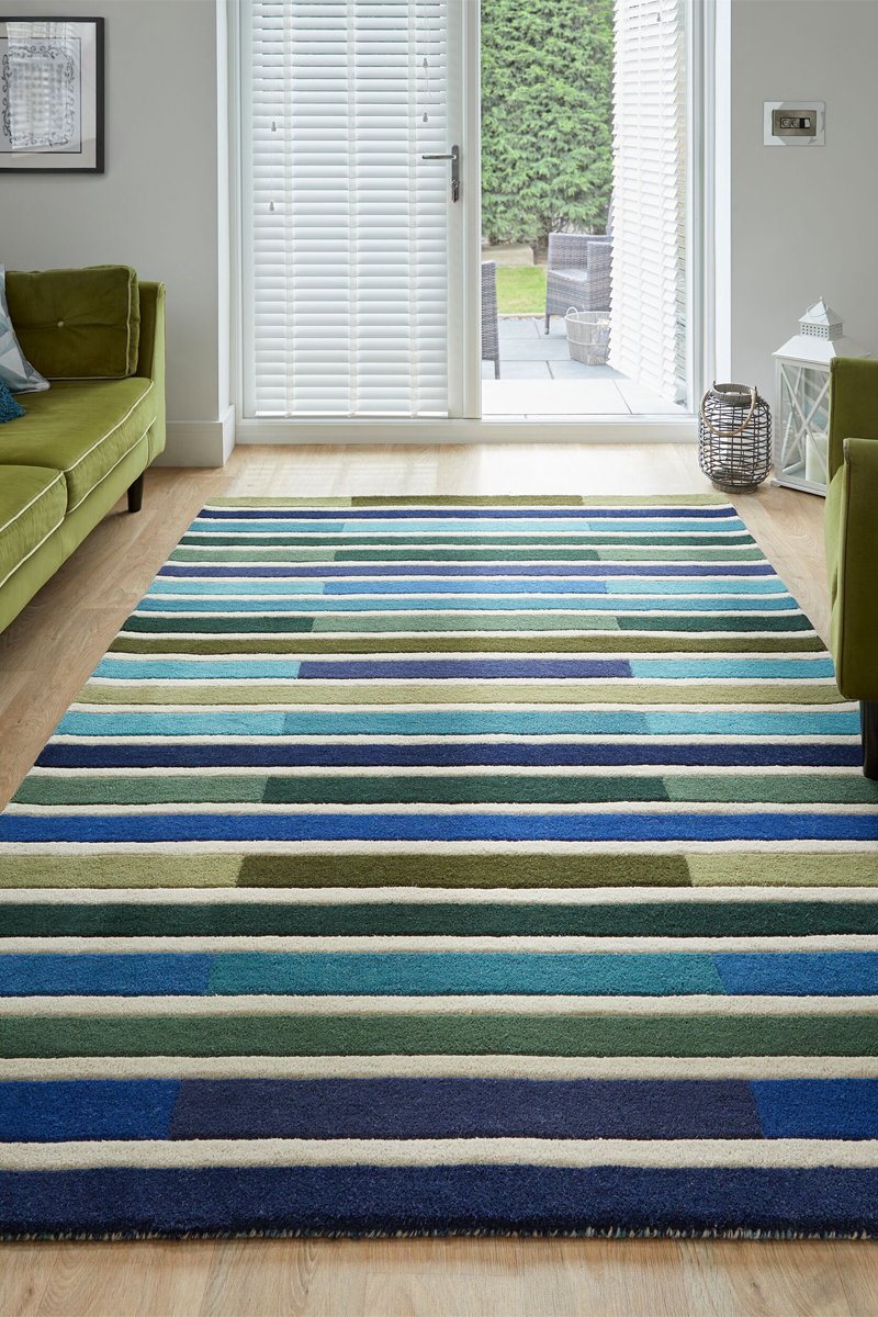 Wollen Vloerkleed Illusion - Blauw en Groen