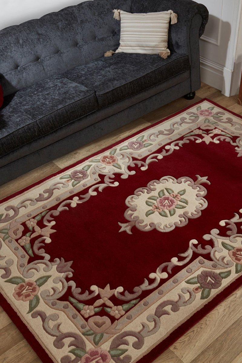 Wollen Vloerkleed Aubusson - Rood en Beige