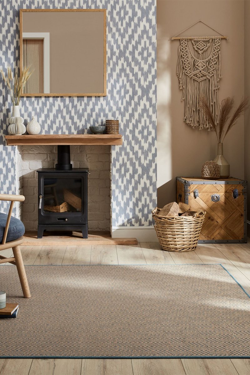 Loper Jute Diamond - Naturel en Blauw