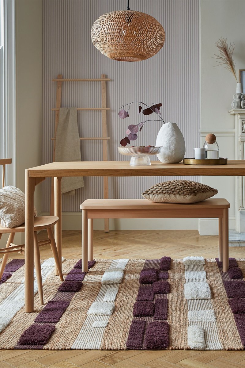 Wollen Vloerkleed Medina Blocks - Naturel en Paars