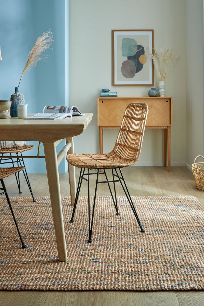 Jute en Wollen Vloerkleed - Naturel en Blauw