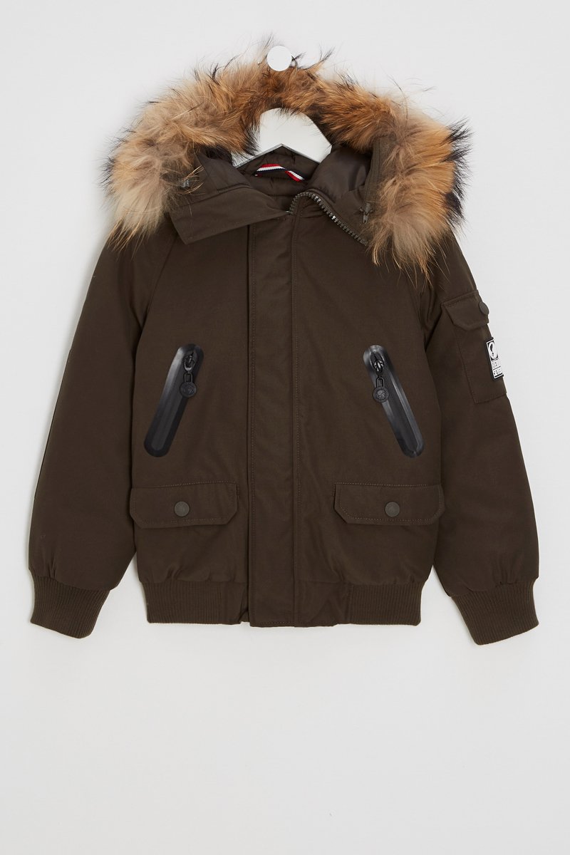 Jack met capuchon met imitatiebont en verstelbaar bandje.