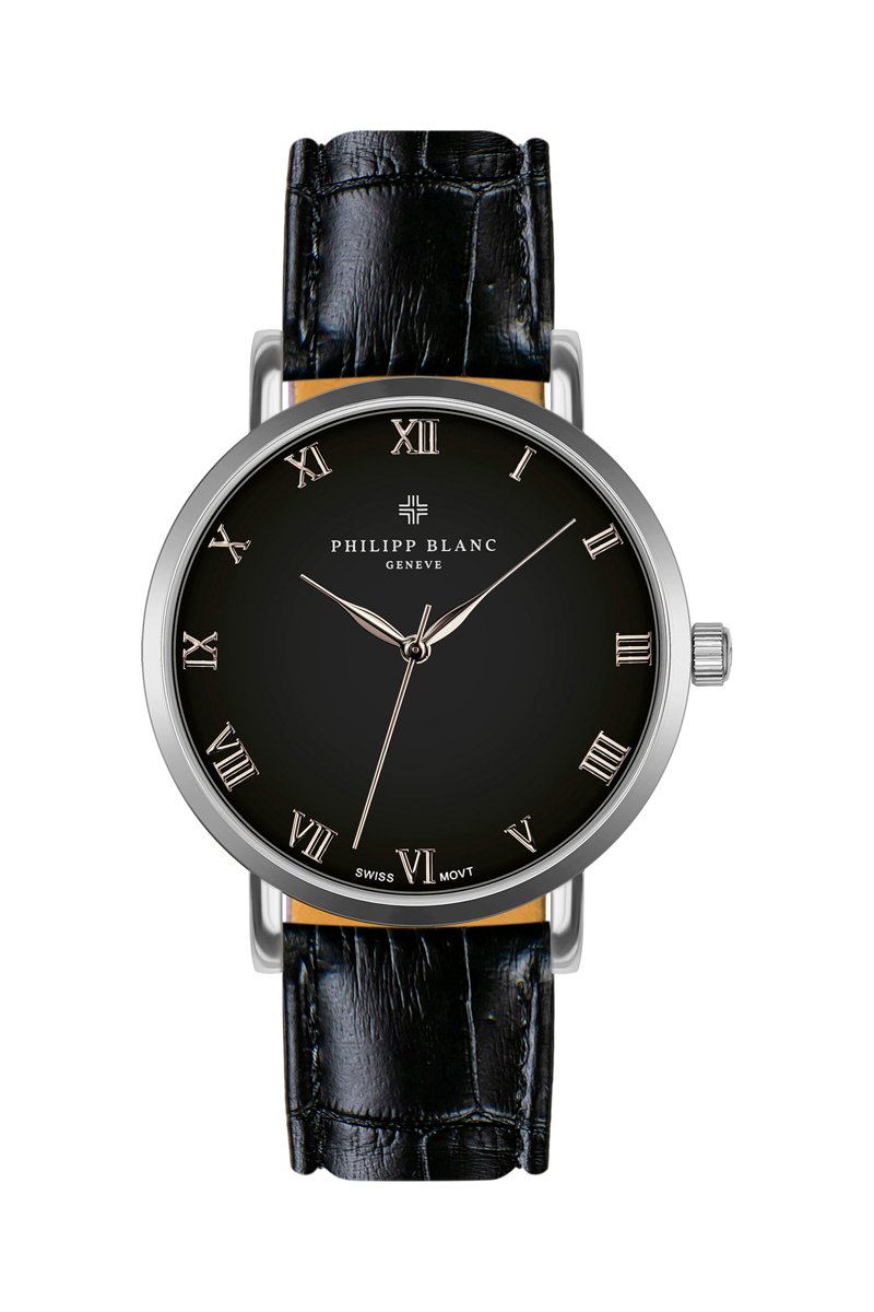 Leren Quartz Horloge - Zwart en Zilverkleurig