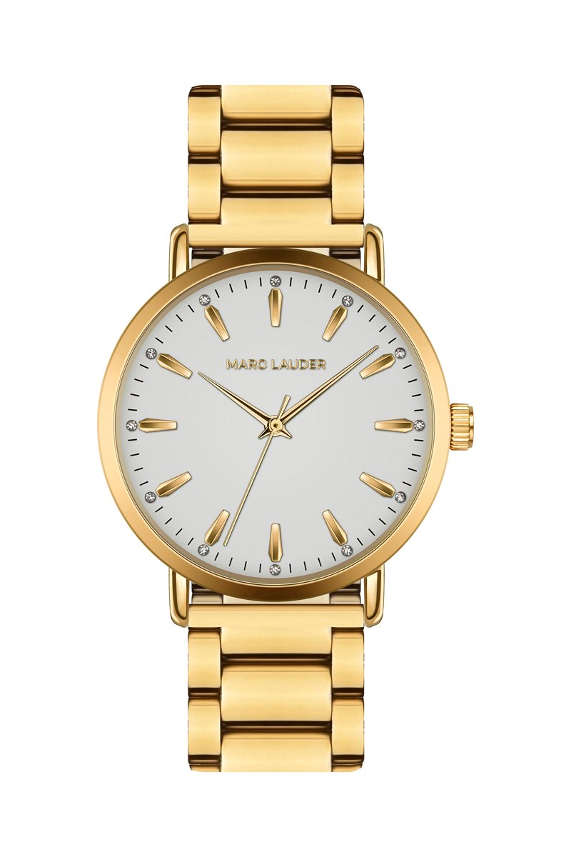 Stalen Quartz Horloge met Zirkonia’s Florence - Goudkleurig en Wit