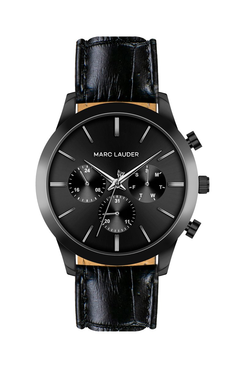 Leren Quartz Horloge Londen - Chronograaf - Zwart