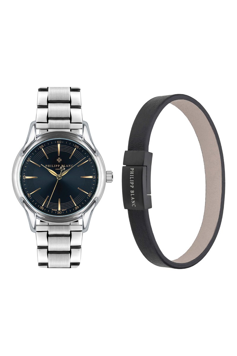 Set Stalen Quartz Horloge en Leren Horlogeband