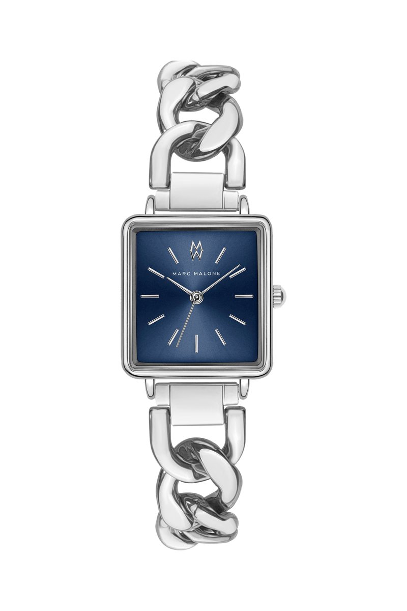 Quartz Horloge van Staal - Zilverkleurig en Blauw - Marc Malone