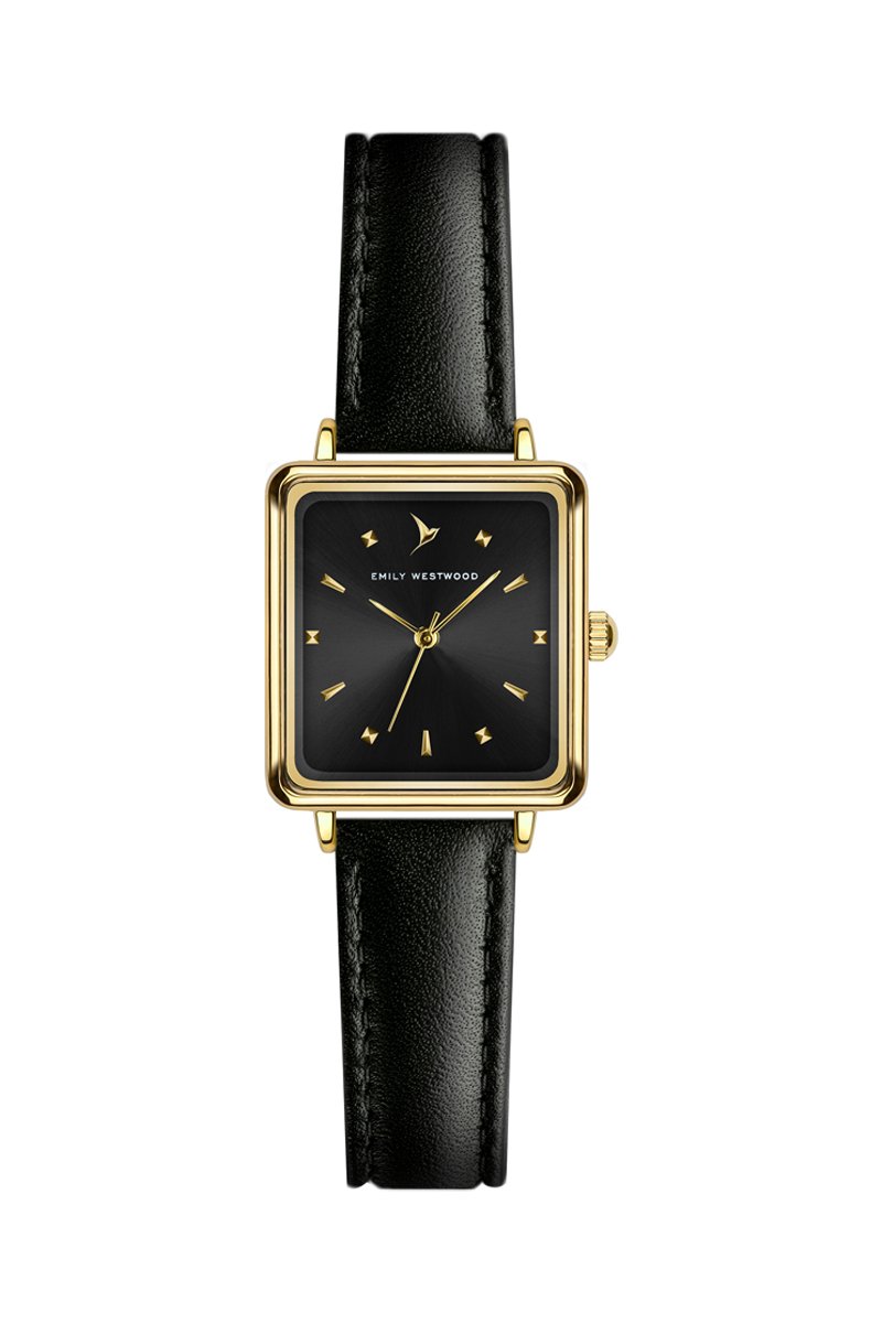 Leren Quartz Horloge - Zwart en goudkleurig - Emily Westwood