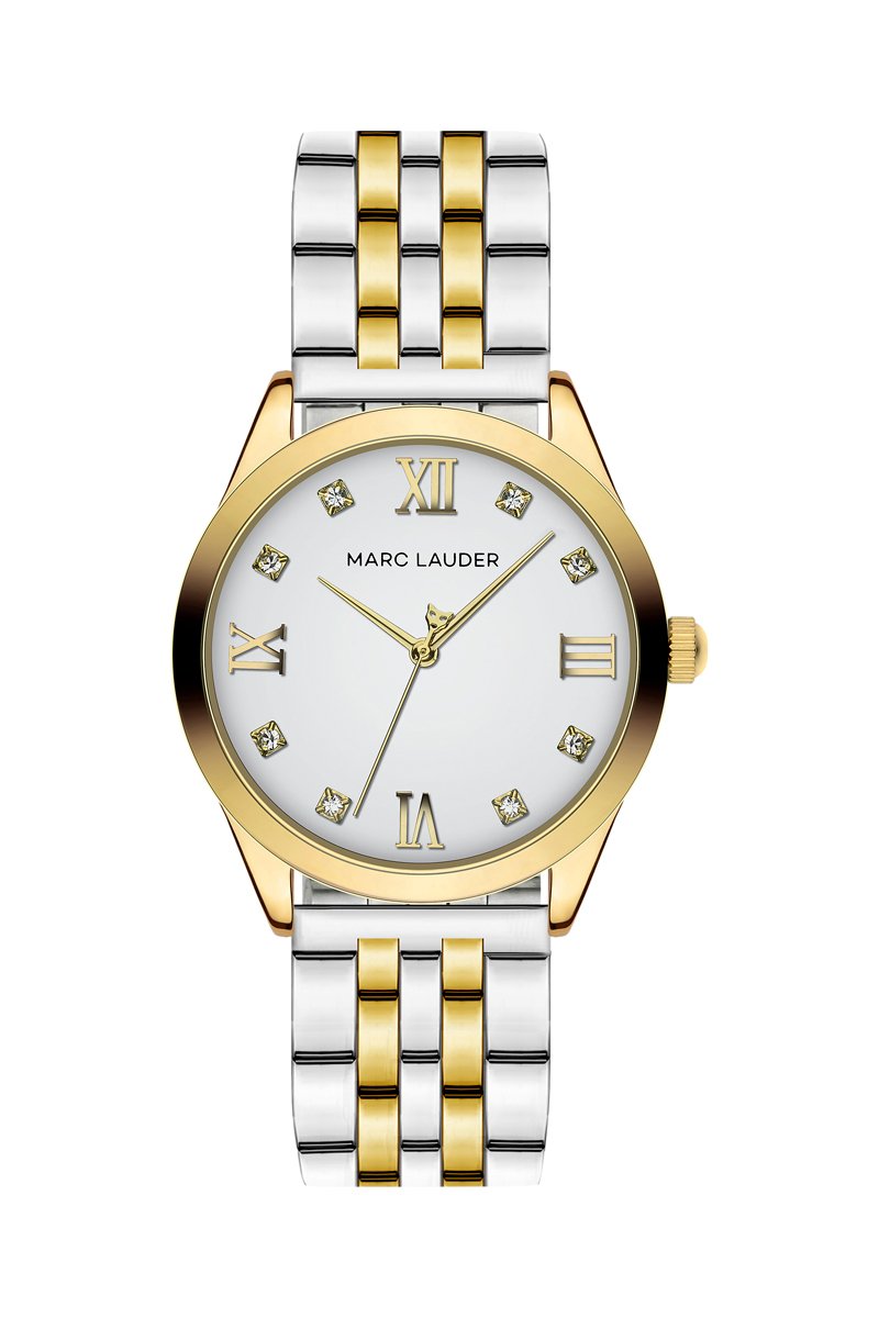 Stalen Quartz Horloge met Zirkonia’s Porto - Zilverkleurig en Goudkleurig