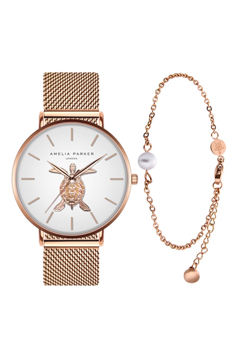 Set Quartz Horloge en stalen armband Rose Turtle- Roze