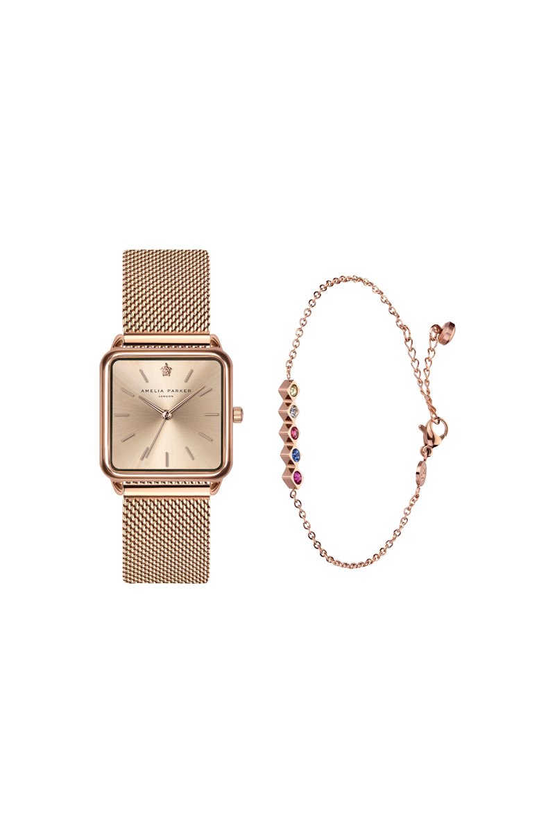 Set Stalen Quartz Horloge en Armband van Zirkonia's Plaza