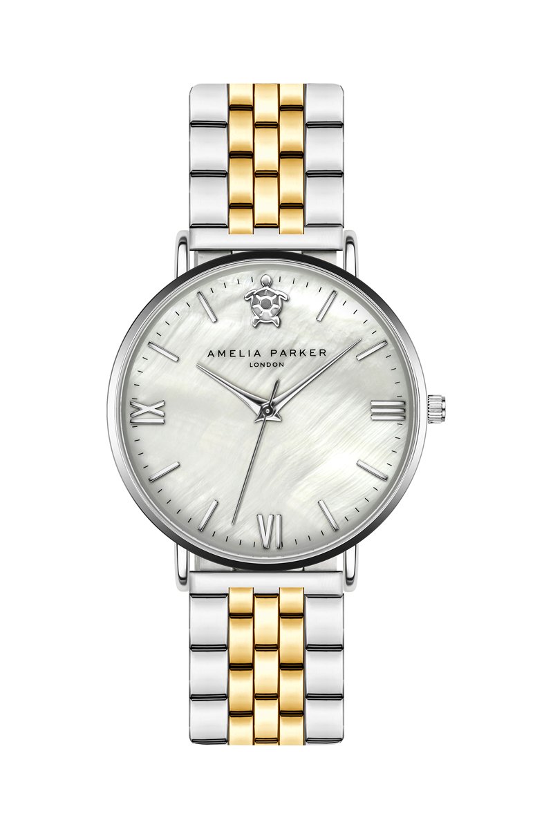 Stalen Quartz Horloge met parelmoer Oyster- Zilverkleurig en Goudkleurig