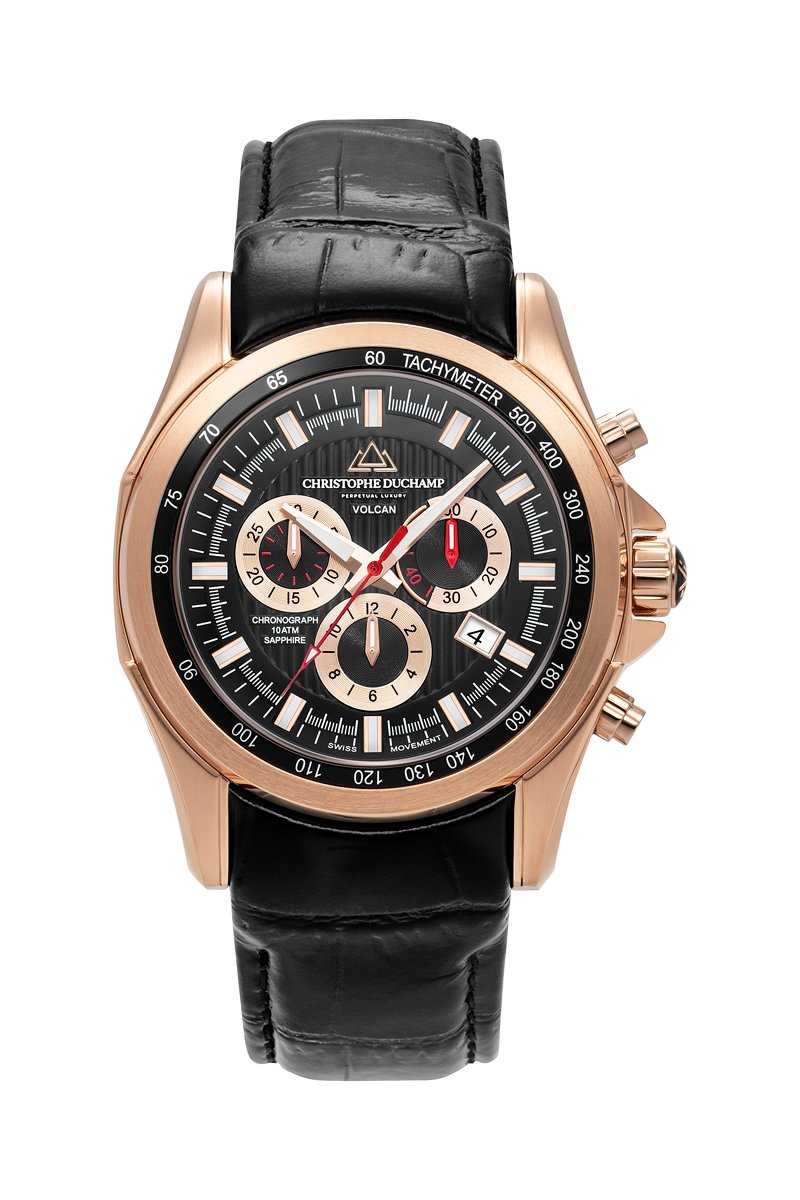 Leren Quartz Horloge - Chronograaf en Tachymeter - Zwart en Roségoudkleurig