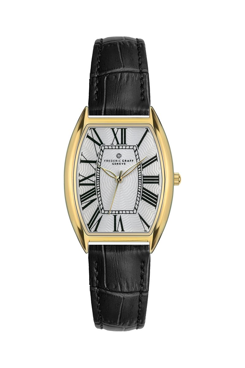 Leren Quartz Horloge - Zwart en Goudkleurig - Frederic Graff