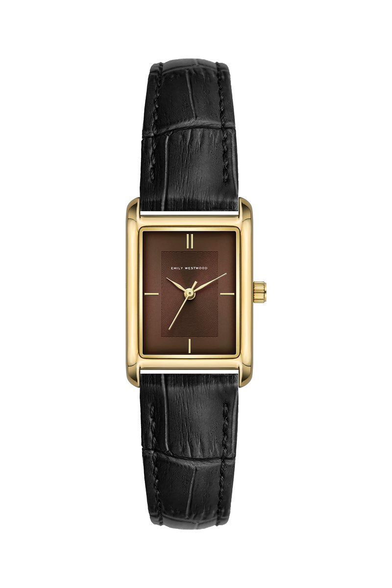 Leren Quartz Horloge - Zwart en Bruin- Emily Westwood