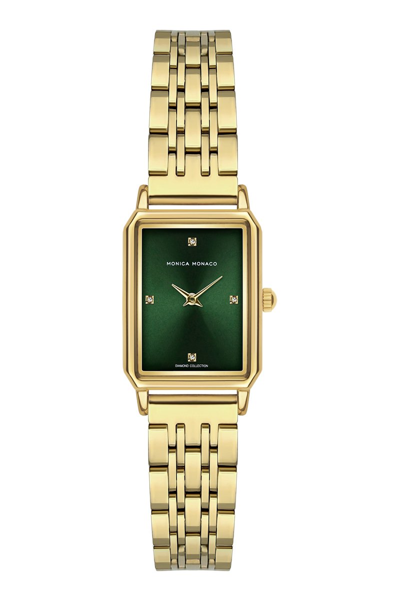Stalen Quartz Horloge met Diamant - Goudkleurig en Groen
