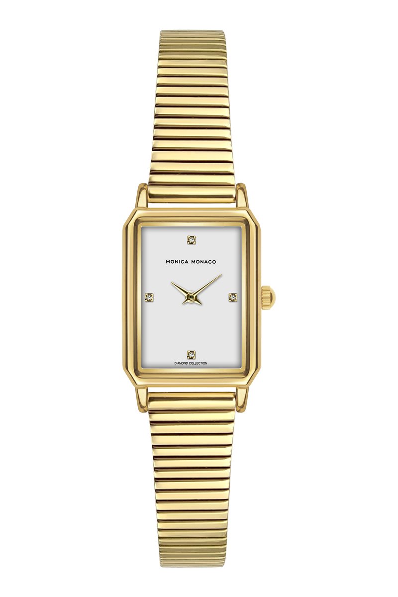 Stalen Quartz Horloge met Diamant - Goudkleurig en Wit