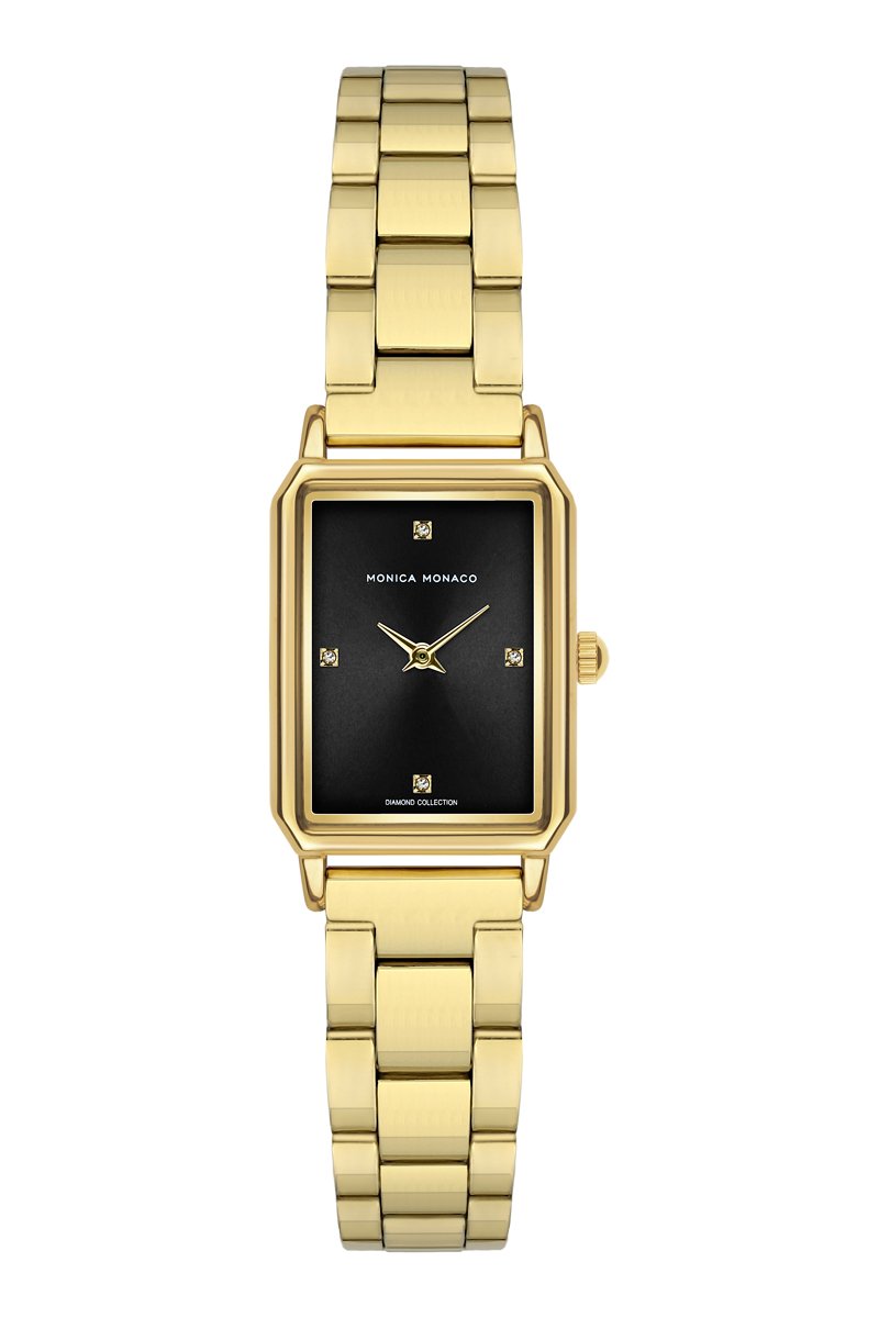 Stalen Quartz Horloge met Diamant - Goudkleurig en Zwart