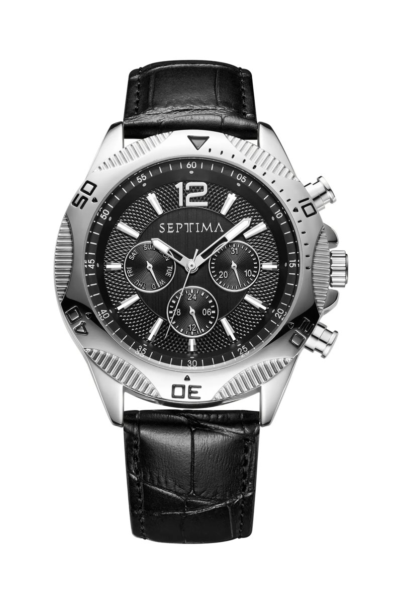 Leren Quartz Horloge - Chronograaf - Zwart en Zilverkleurig