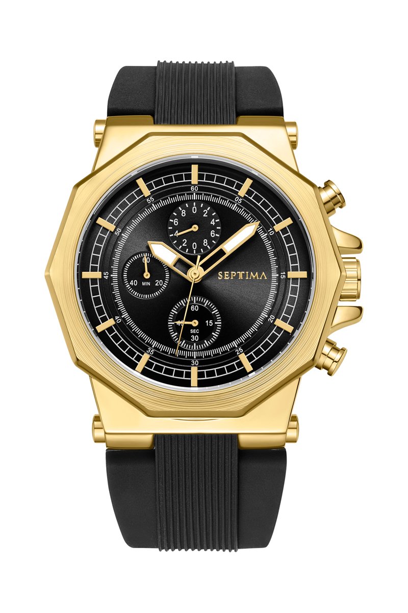 Siliconen Quartz Horloge - Chronograaf - Zwart en Goudkleurig