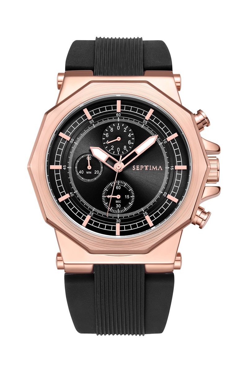 Siliconen Quartz Horloge - Chronograaf - Zwart en Roségoudkleurig