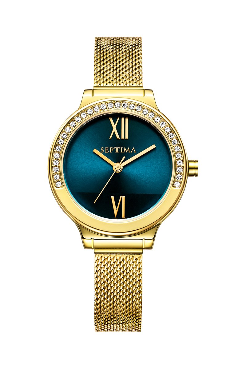 Stalen Quartz Horloge - Goudkleurig en Pauwblauw