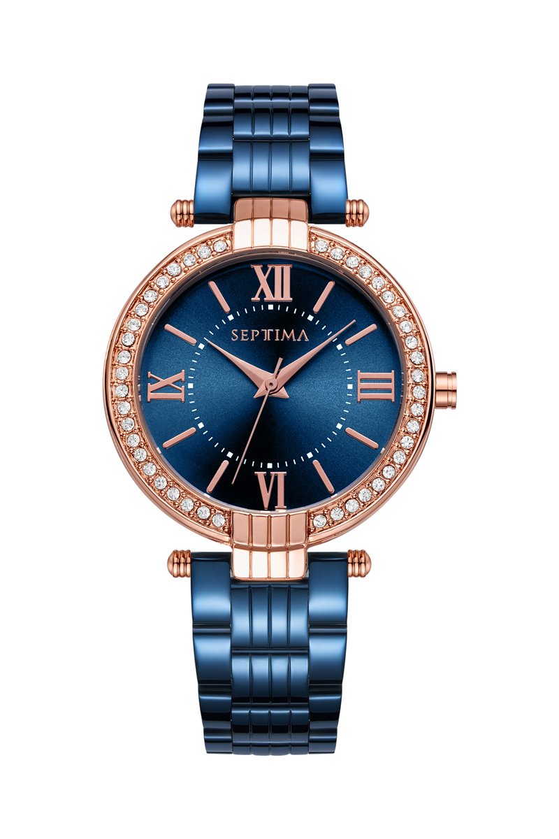 Kleur: kobaltblauw, roségoudkleurig en wit