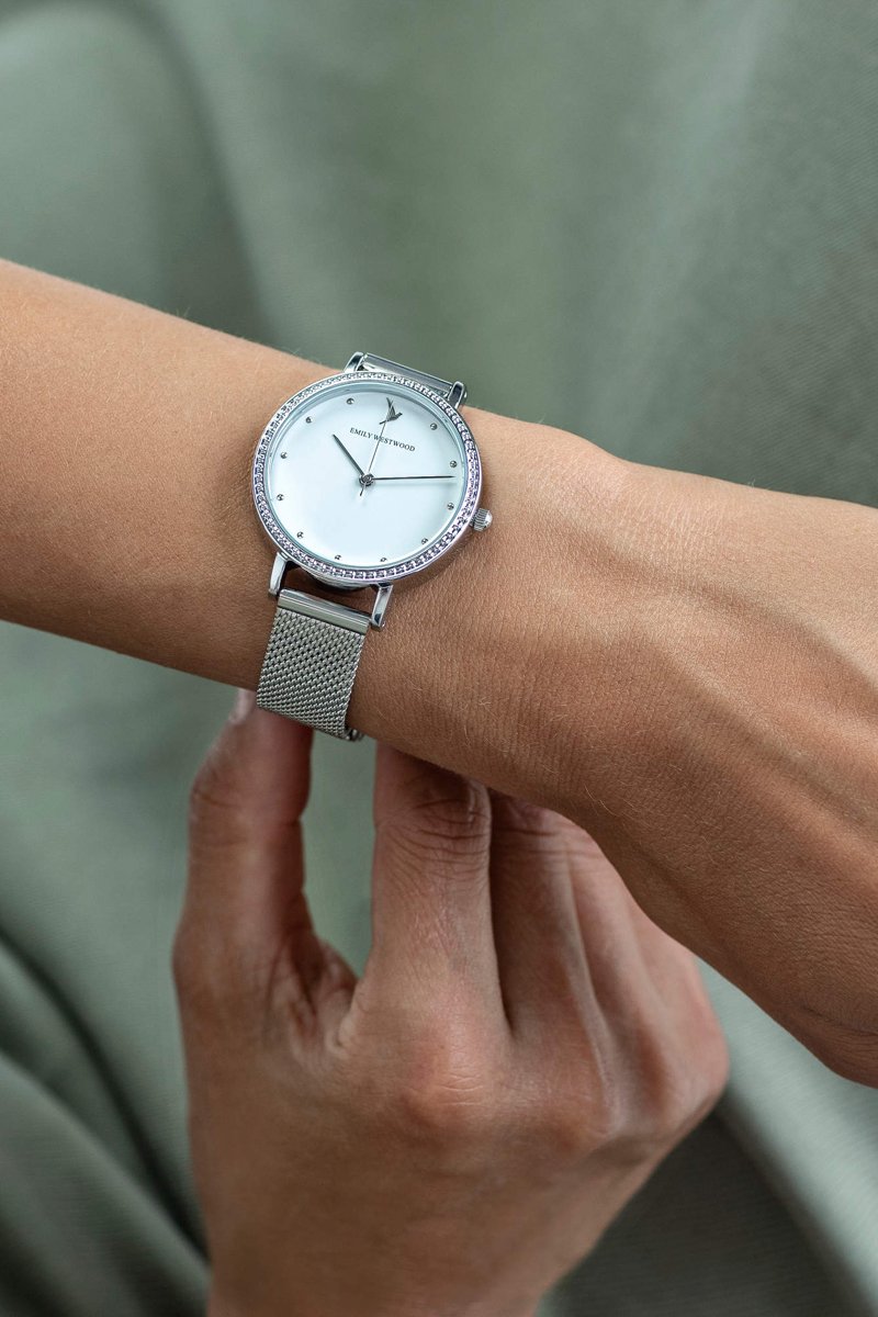 Stalen Quartz Horloge - Zilverkleurig en Wit - Emily Westwood