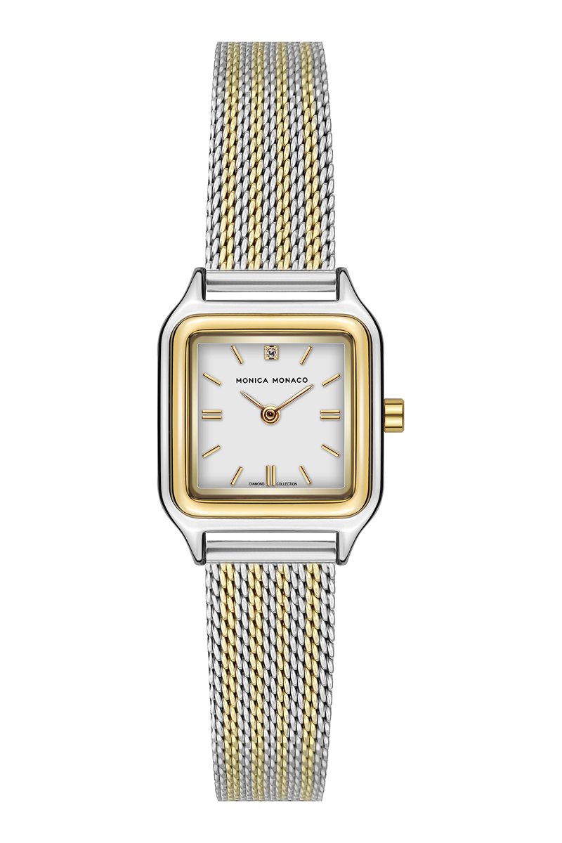 Stalen Quartz Horloge met Diamant - Goudkleurig en Zilverkleurig