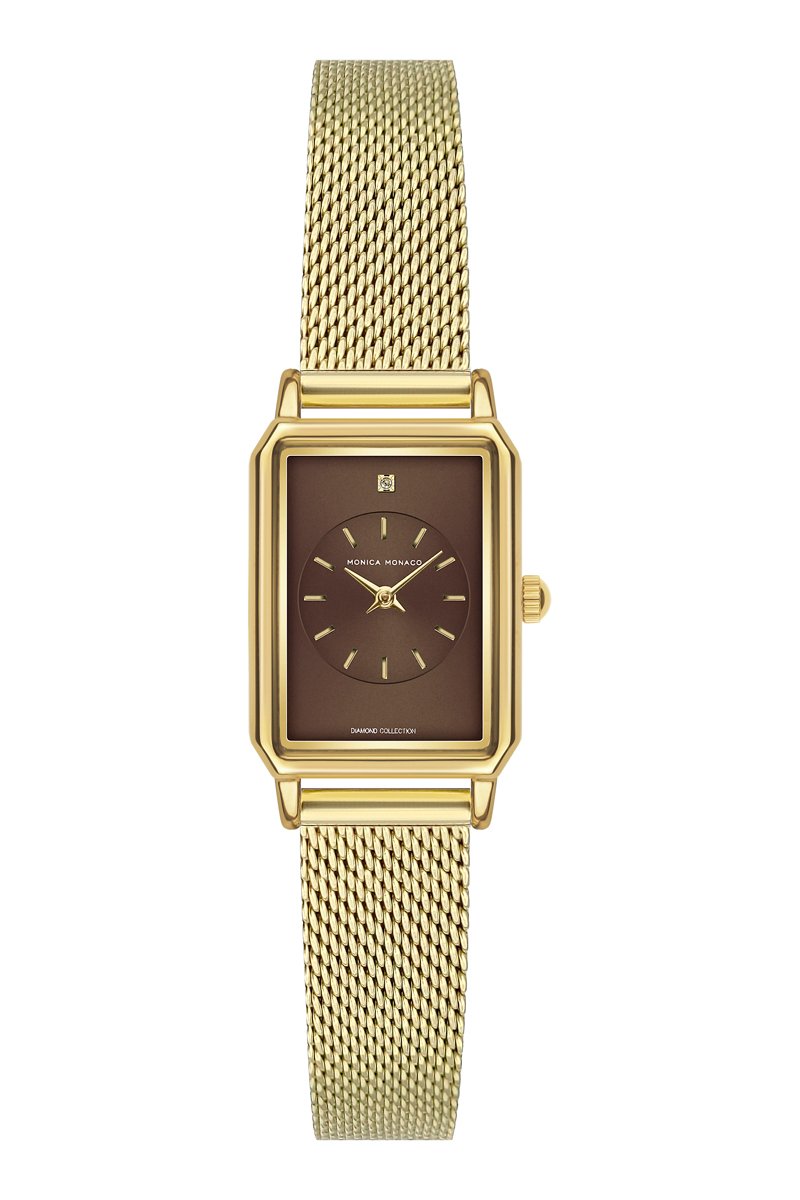 Stalen Quartz Horloge met Diamant - Goudkleurig en Bruin