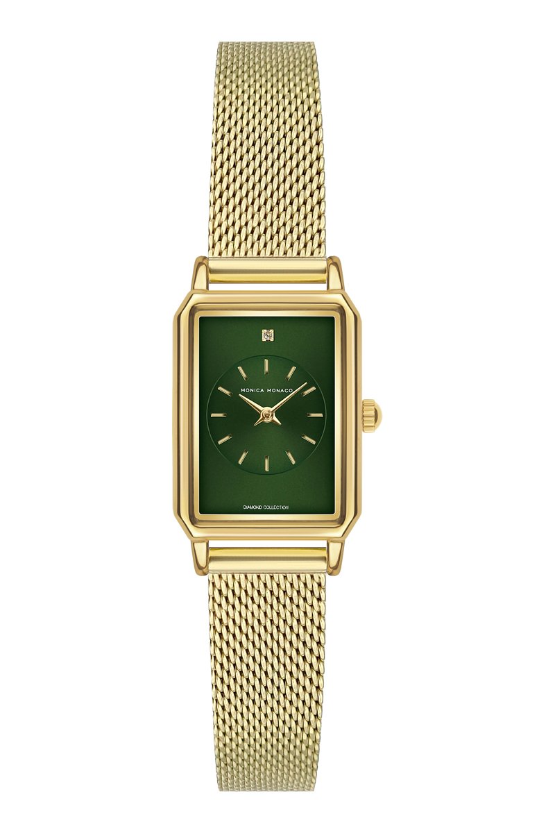 Stalen Quartz Horloge met Diamant - Goudkleurig en Groen