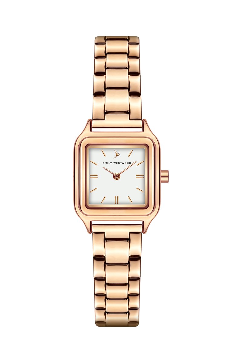 Japans Stalen Quartz Horloge - Roségoudkleurig en Wit - Emily Westwood