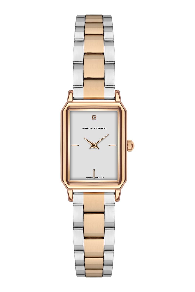 Stalen Quartz Horloge met Diamant - Roségoudkleurig en Zilverkleurig