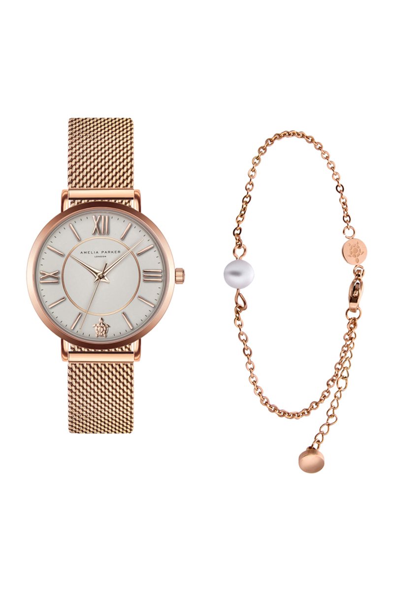 Set Stalen Quartz Horloge en Horlogeband - Roségoudkleurig